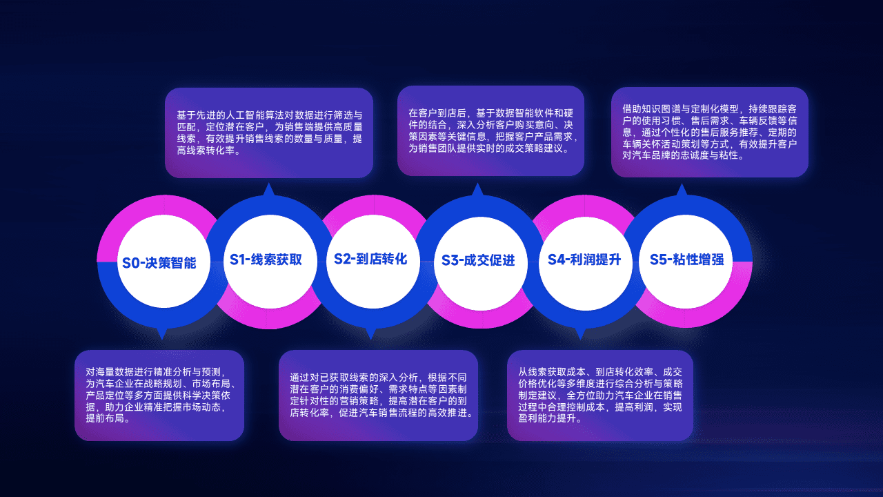 通过拓宽潜在客户来源、、、优化线索分配并提高到店转化率,,,以增强销售效率。。。同时,,,利用线索数据不断优化分析模型,,,,有效提升转化率,,扩大营销影响力。。。